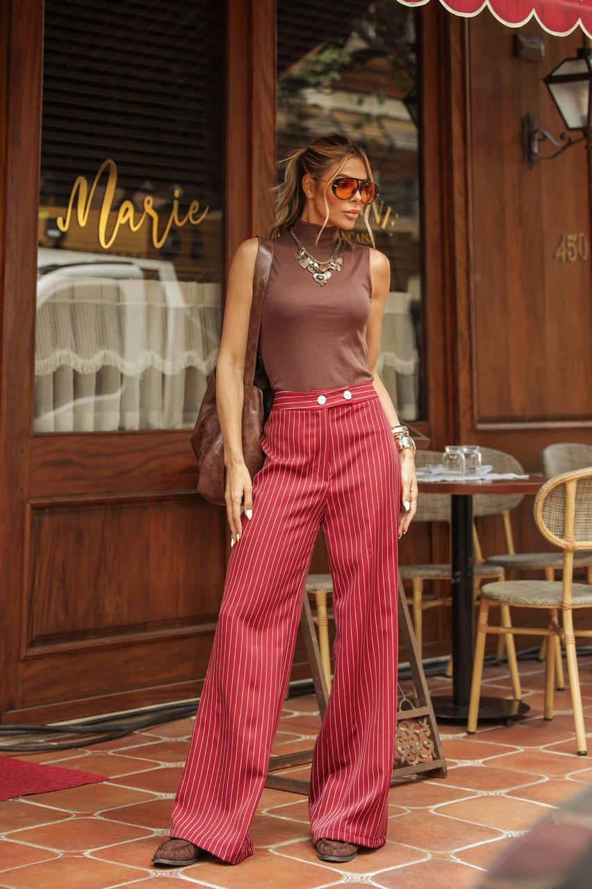 A Calça Linea é confeccionada em tecido de alfaiataria, proporcionando um caimento impecável que valoriza a silhueta com muito estilo. Ideal para quem busca um visual sofisticado sem abrir mão do conforto. Veste do 38 ao 40.